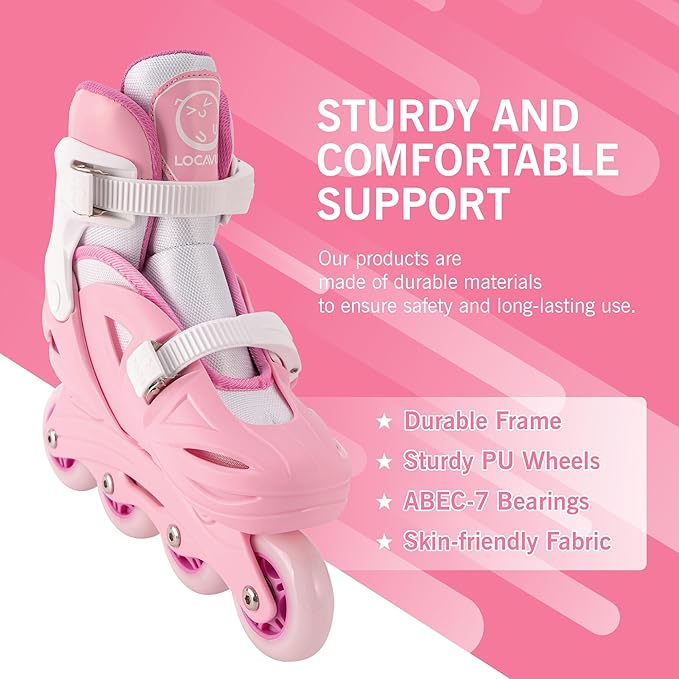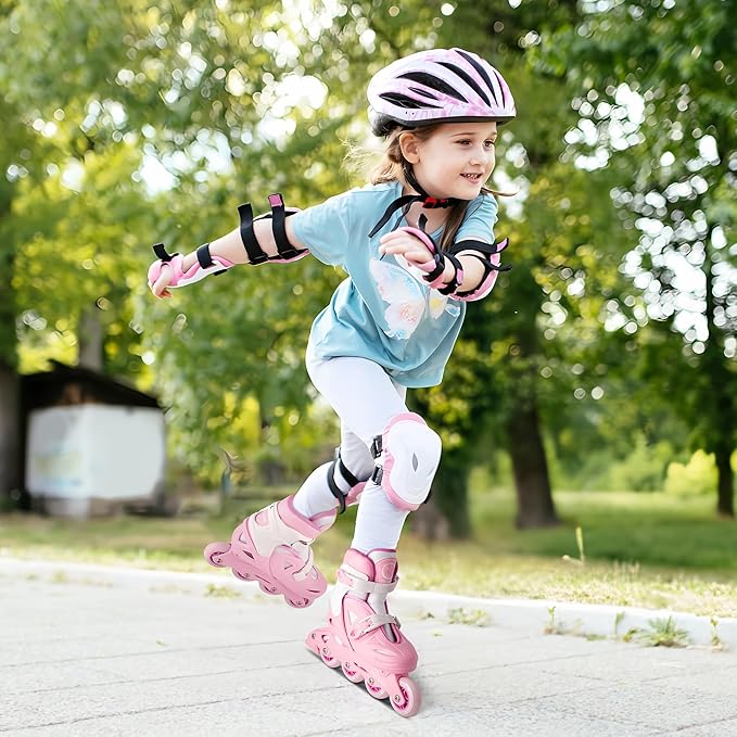 - Regulowany rozmiar dla dorastających dzieci: wystarczy jedno naciśnięcie przycisku, nasze wrotki dostosowują się do czterech rozmiarów, dzięki czemu są idealne dla szybko rosnących dzieci i zapewniają, że jedna para wrotek rośnie wraz z dzieckiem, zapewniając wieloletnie użytkowanie i przyjemność.