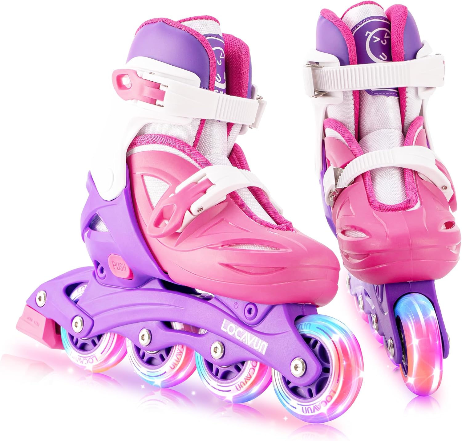 - Regulowany rozmiar dla dorastających dzieci: wystarczy jedno naciśnięcie przycisku, nasze wrotki dostosowują się do czterech rozmiarów, dzięki czemu są idealne dla szybko rosnących dzieci i zapewniają, że jedna para wrotek rośnie wraz z dzieckiem, zapewniając wieloletnie użytkowanie i przyjemność.
