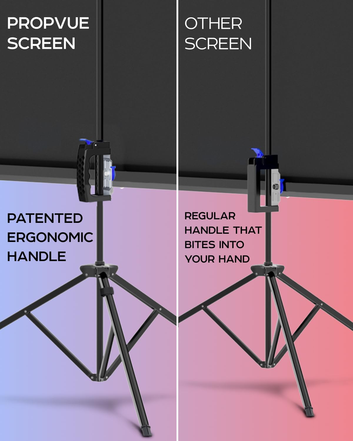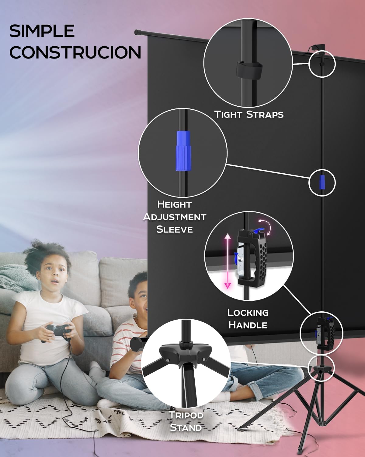 - Lekki ekran projekcyjny jest montowany za pomocą stabilnego stojaka na statyw z szerokimi nogami, co zapewnia niezawodność i bezpieczeństwo dla Twojego komfortu.