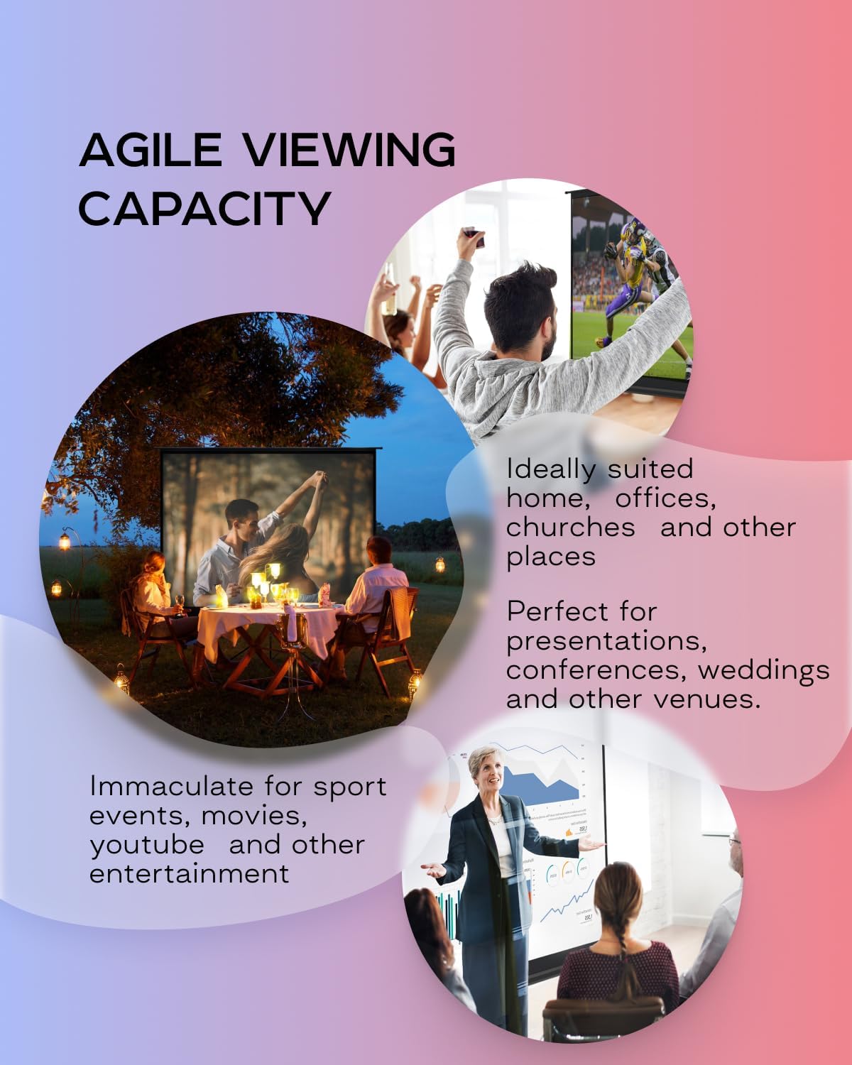 - Ekran projektora z podstawką i wysokiej jakości matowym PVC bez zmarszczek na statywie zapewnia odpowiedni widok filmów i gier lub prezentacji w najwyższej jakości