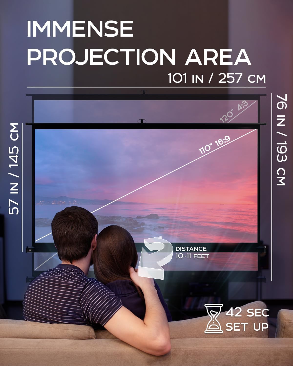 - Doskonały ekran projekcyjny HD 4:3 zapewnia nienaganne wrażenia wizualne dzięki szerokiemu kątowi odbicia o wzmocnieniu 1,1 i wszechstronnej regulacji wysokości