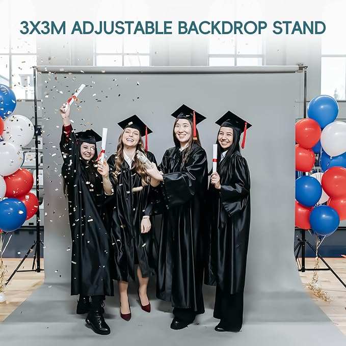 - Regulowany stojak na tło Wysokość stojaka na tło można regulować w zakresie 103-240 cm, a szerokość w zakresie 130-250 cm. Wymiary można zablokować w dowolnym rozmiarze, aby spełnić Twoje potrzeby