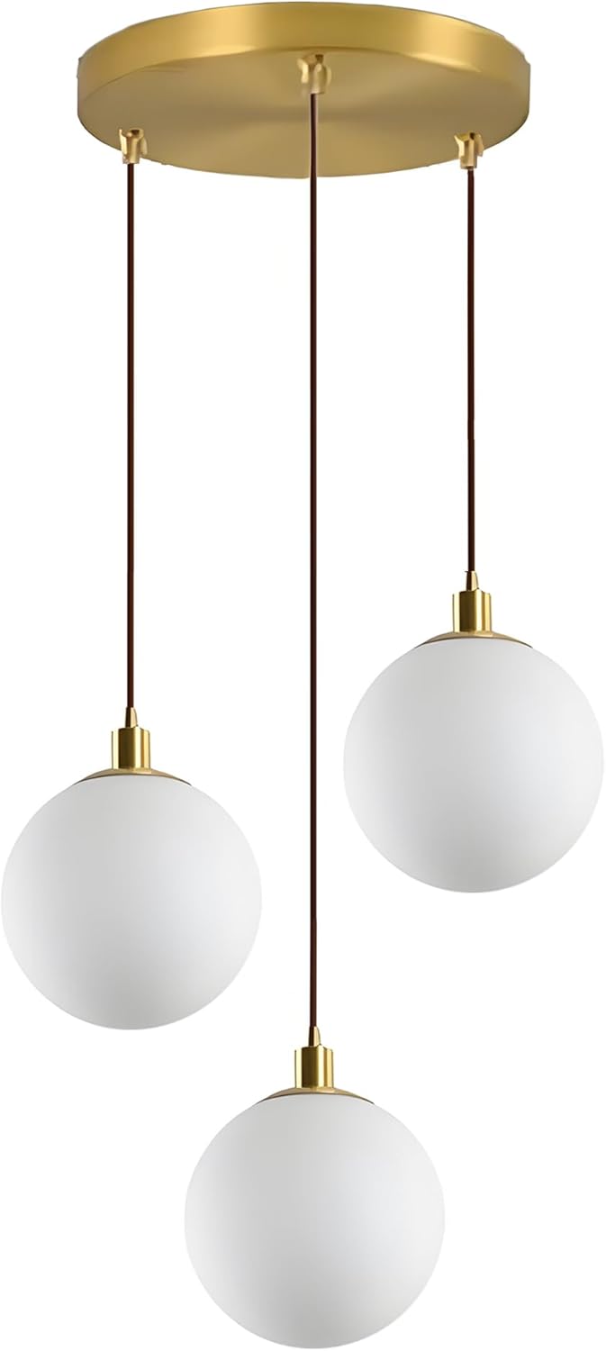 HJXDtech Minimalistyczna lampa wisząca z 3 lampkami, matowa, biała, szklana kula, nowoczesna, E27, mosiądz, pleciona, elastyczna lampa sufitowa do sypialni, salonu, kuchni
