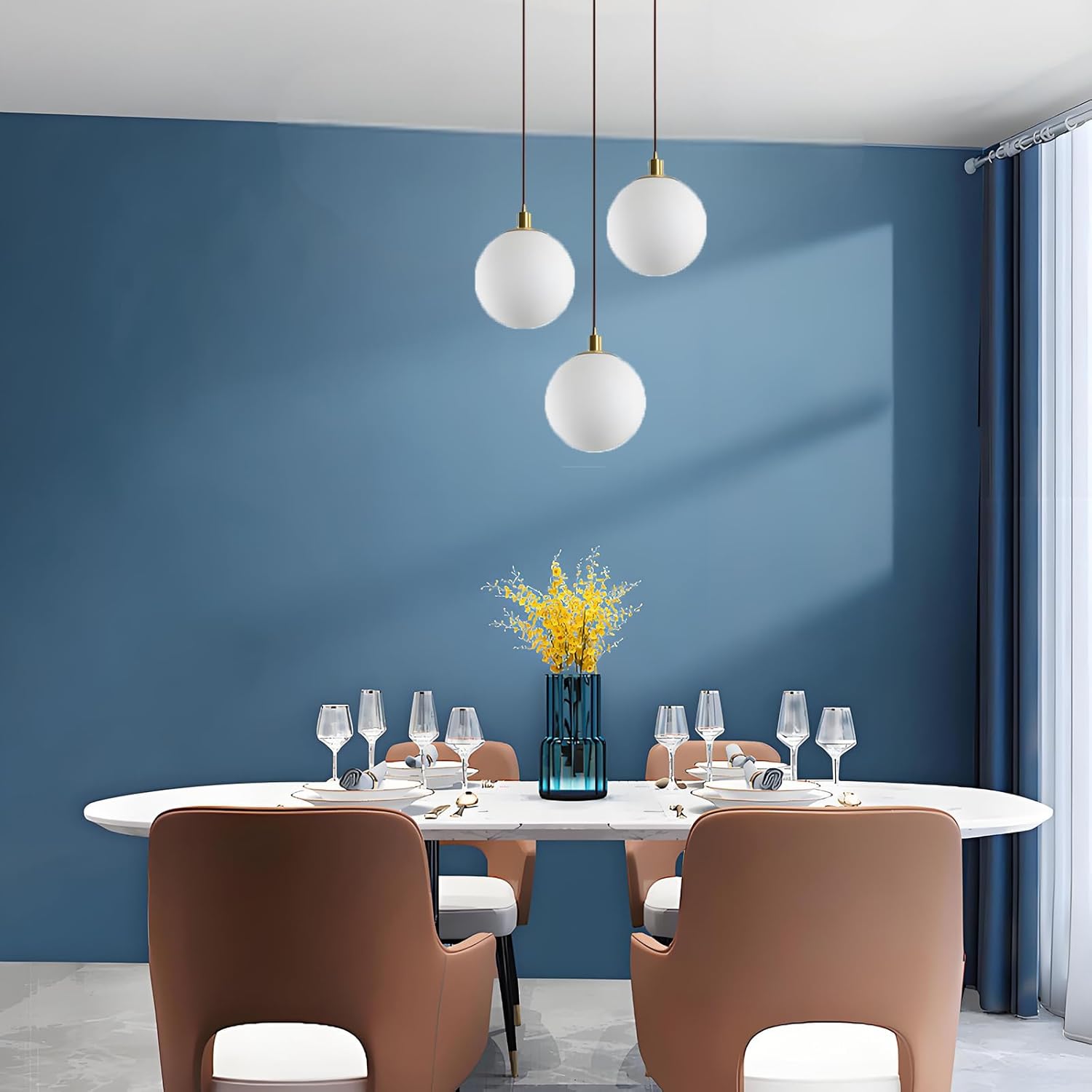 HJXDtech Minimalistyczna lampa wisząca z 3 lampkami, matowa, biała, szklana kula