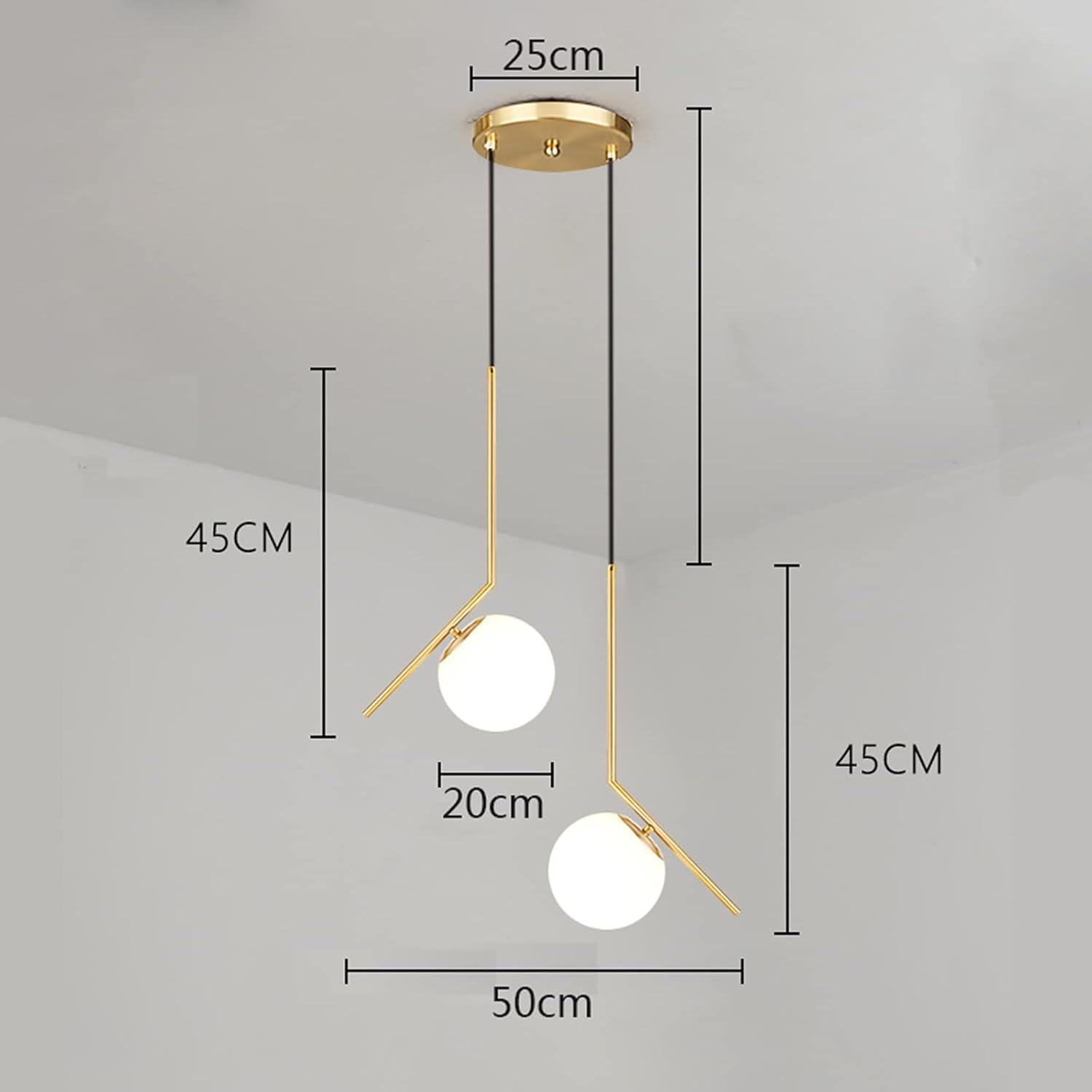 HJXDtech nowoczesna biała szklana kula wisząca lampa, złota metalowa lampa wisząca na suficie Loft Bar Kuchnia Salon i jadalnia żyrandol (2-światła)