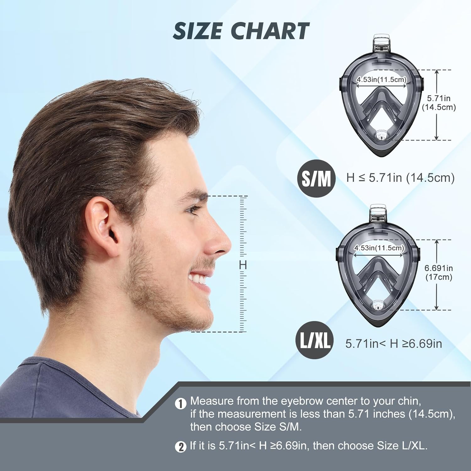 Pełnotwarzowa maska do nurkowania KUYOU dla dorosłych, sprzęt do snorkelingu, składana maska do nurkowania z rurką z panoramicznym widokiem 180 stopni, swobodne oddychanie, zapobieganie wyciekom i mgłom