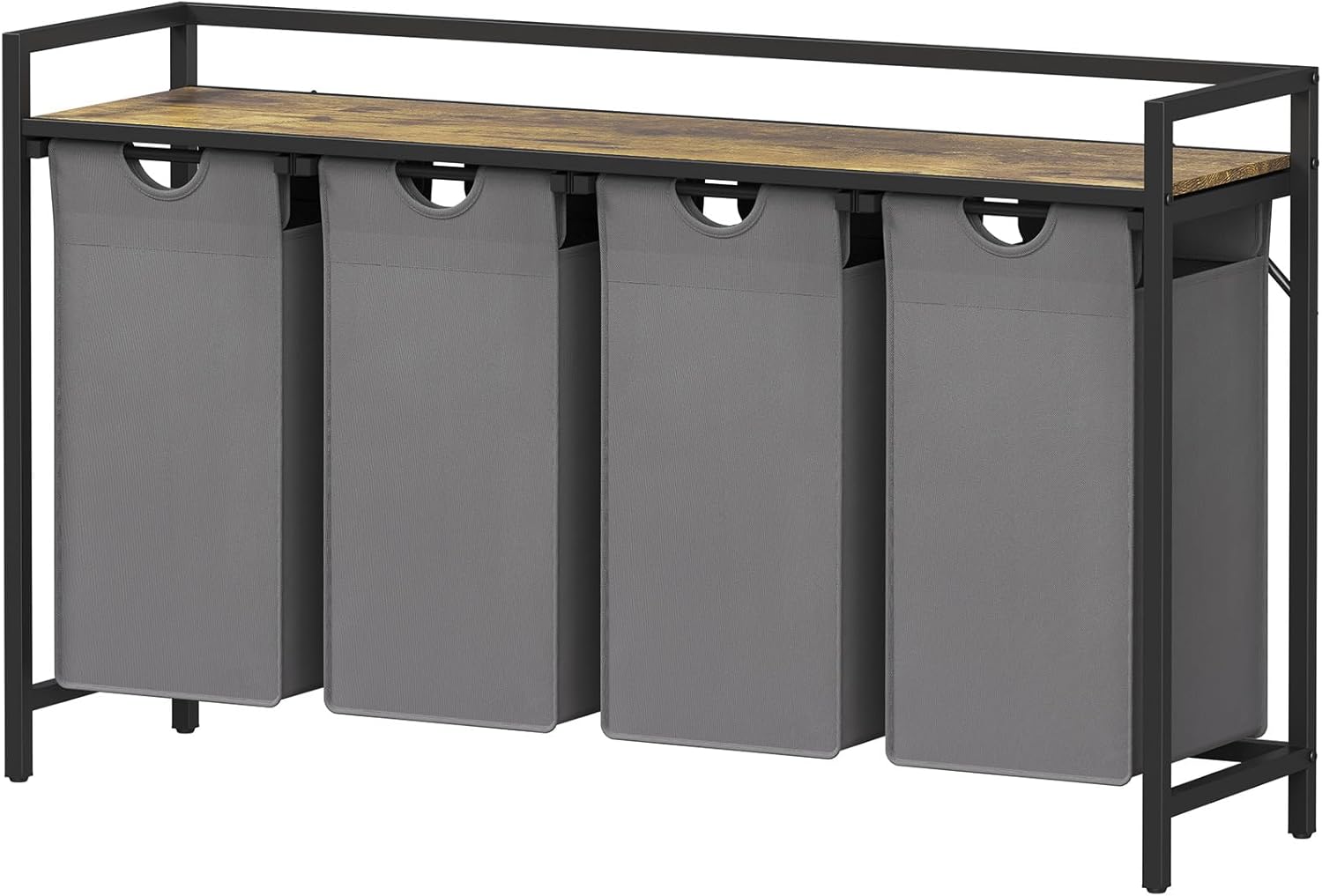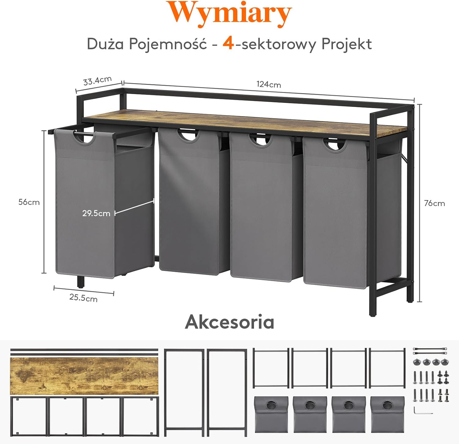 Lifewit Kosz na pranie 4-sekcyjny, 168L Organizator kosza na pranie z dużą górną półką i 4 wyjmowanymi workam