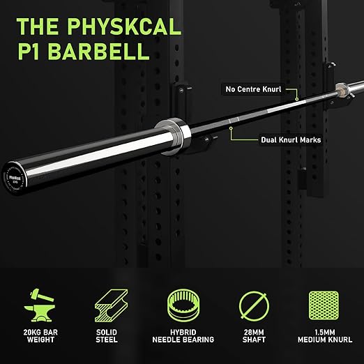PhysKcal Uniwersalna sztanga olimpijska do podnoszenia ciężarów i trójboju siłowego, sztanga do przysiadów, martwego ciągu i wyciskania na ławce, talerze olimpijskie, sztanga męska i damska