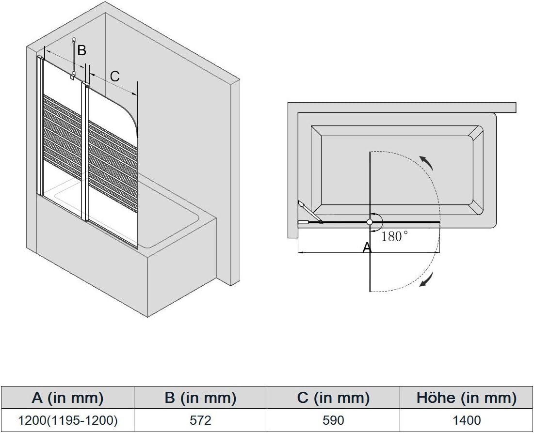 SONNI Ścianka prysznicowa do wanny 120 x 140 cm (szer. x wys.), paski z mlecznego szkła ze stabilizatorem, ścianka prysznicowa nakładka, ścianka działowa