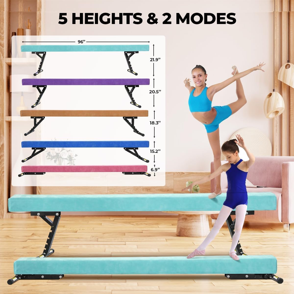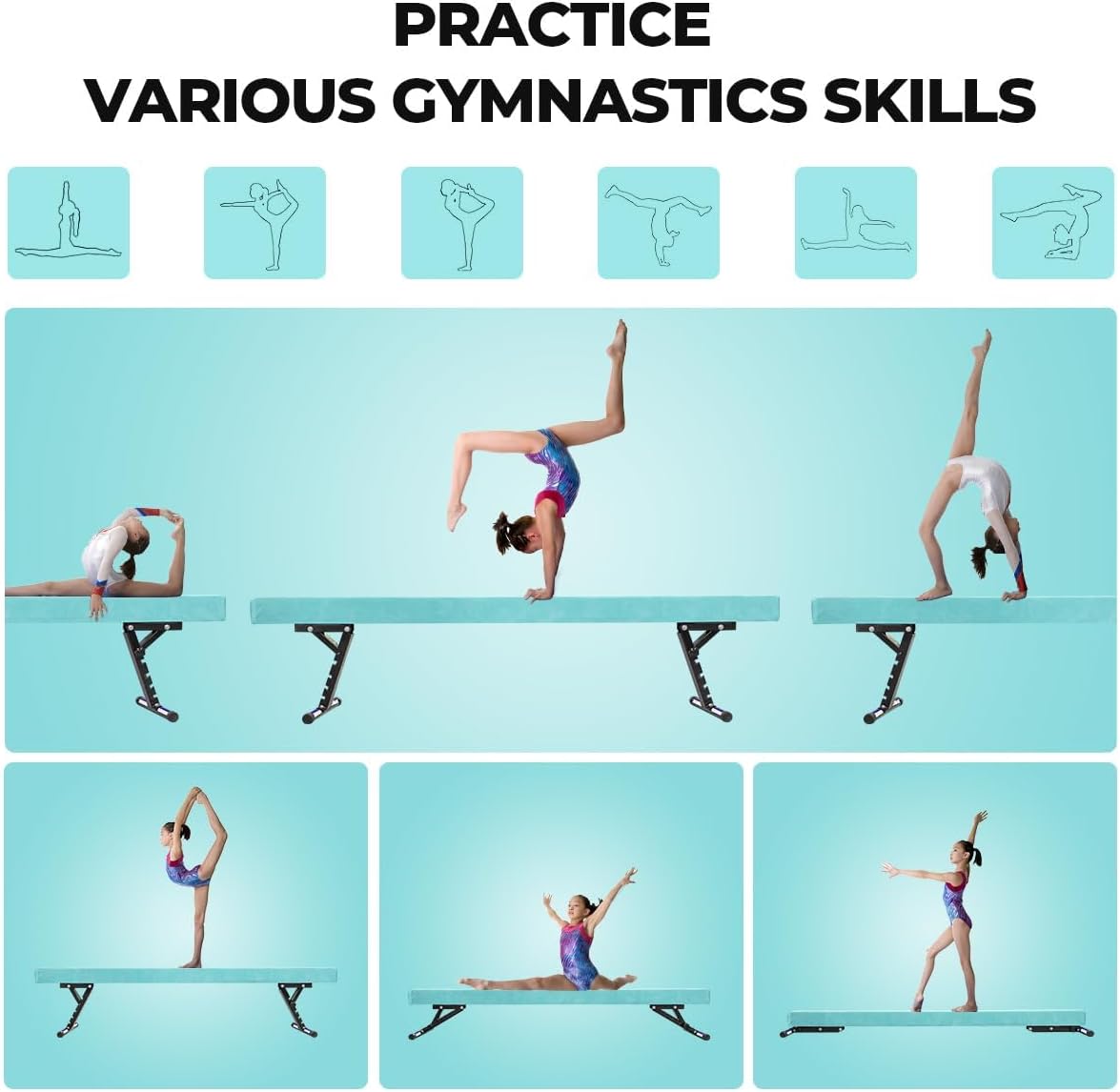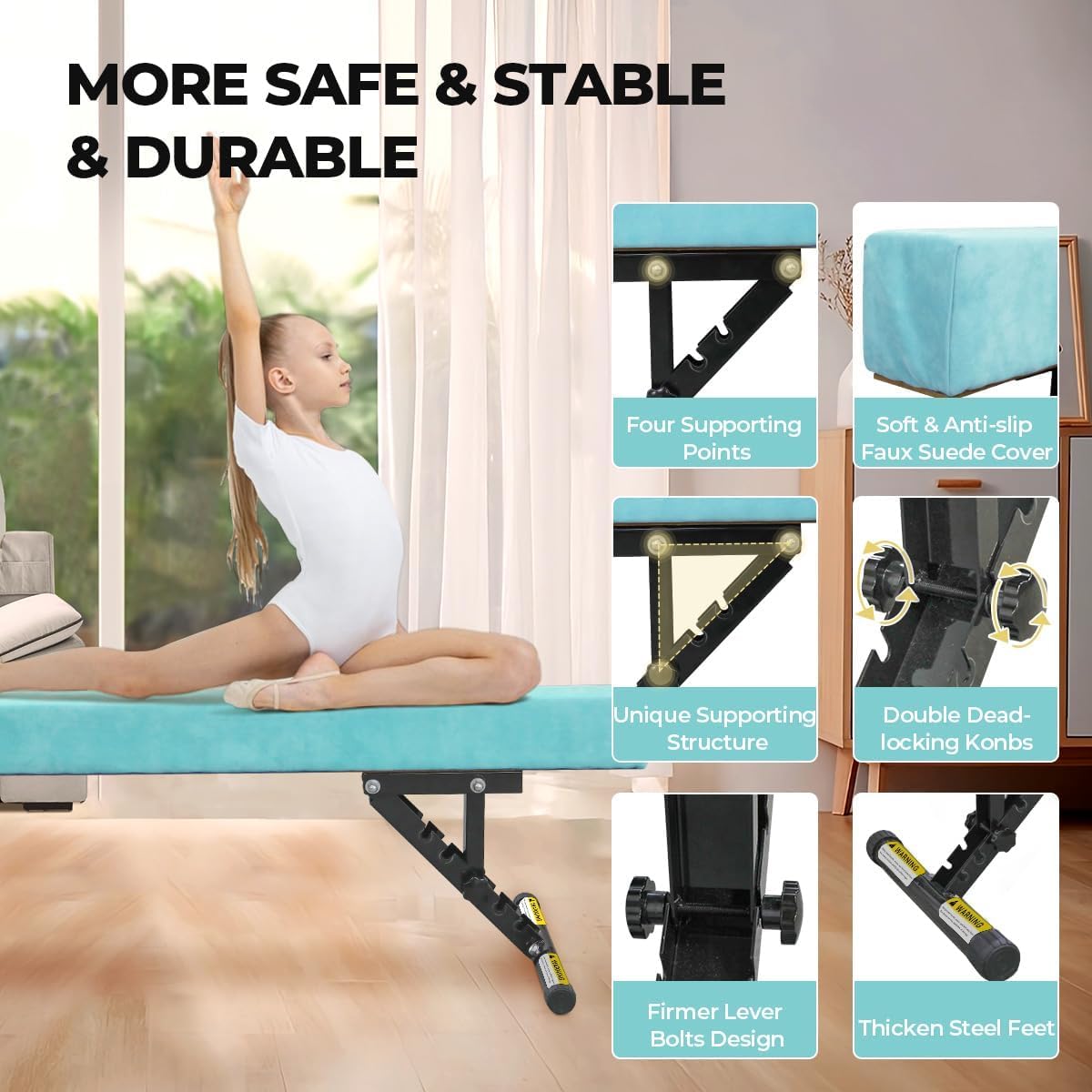 - 5 wysokości i 2 tryby pracy: ta belka gimnastyczna o długości 244 cm i szerokości 10 cm zapewnia wszechstronność z pięcioma opcjami wysokości i dwoma trybami. Dzięki ustawieniom od 6,9" dla początkujących w trybie podłogowym do 21,9" dla zaawansowanych ćwiczeń, nadaje się do różnych poziomów umiejętności i umożliwia szeroki zakres umiejętności gimnastycznych, w tym obracanie, podskakiwanie, skakanie, walkover, kopanie i wiele innych.