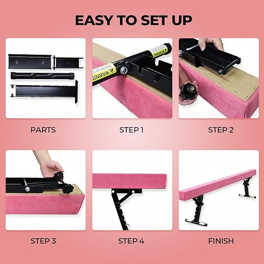 SportBob Belka pływająca dla dzieci, składana, 244 cm, 5 poziomów regulacji, wysoki i niski poziom, belki do gimnastyki, belki do balansowania do domu, na zewnątrz, do treningu wewnątrz i na zewnątrz (różowa)