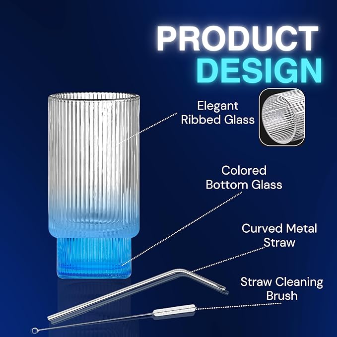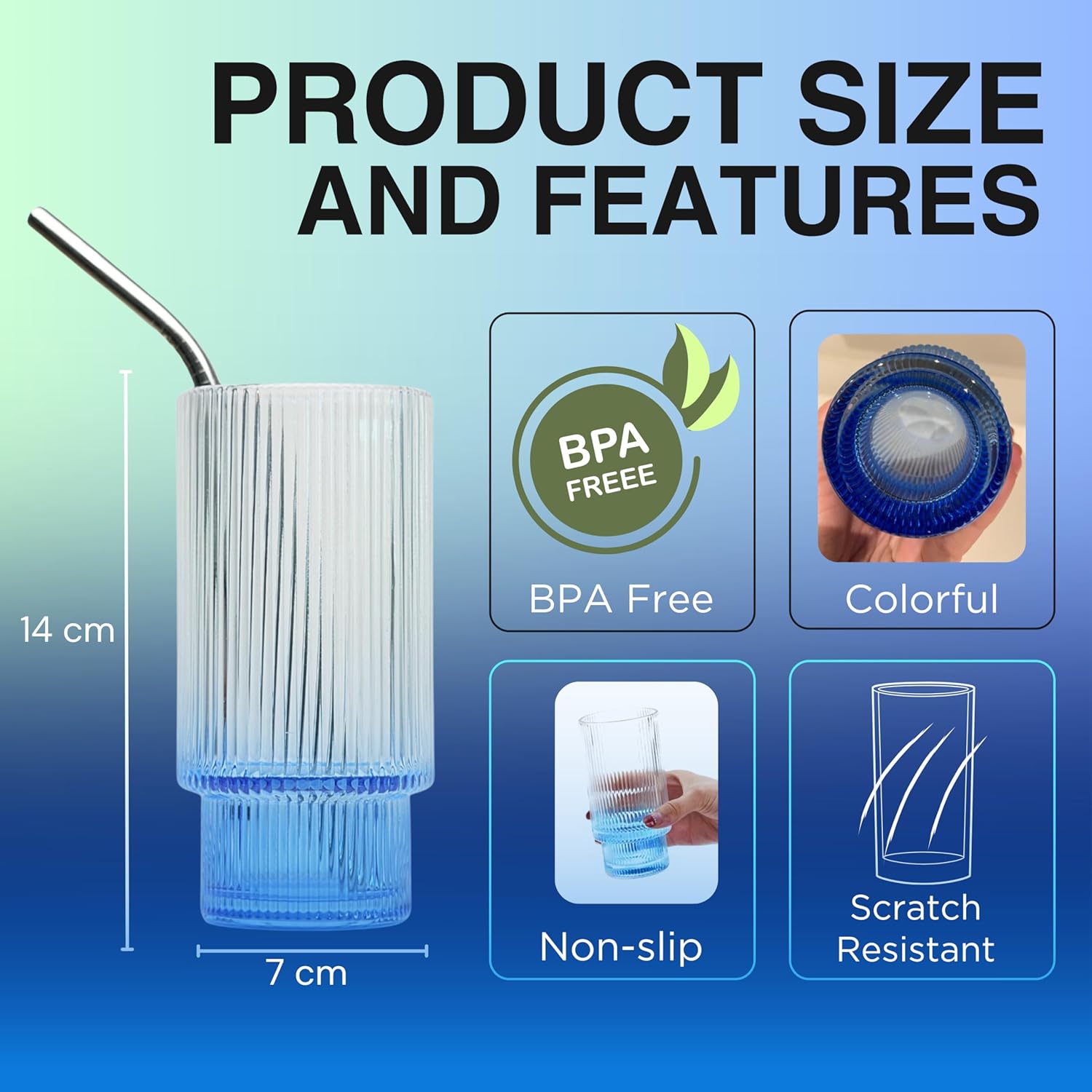 Szklanka Smiths Mason Jars ml Ribbed Collins Glass - Origami Vintage Drinking Glasses z metalowymi słomkami w zestawie sztuk szklanki do mrożonej kawy koktajli whisky piwa i soków niebieskie