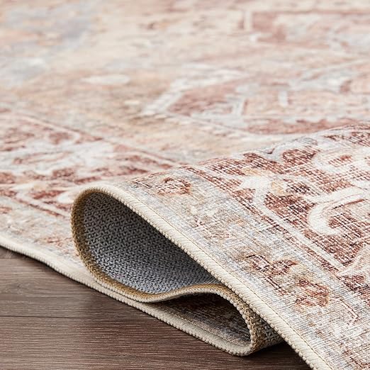 Topick Dywan vintage, czerwona cegła, można prać w pralce, krótkie włosie, do salonu, perski orientalny antypoślizgowy dywan do sypialni, kuchni, biura, 150 x 210 cm
