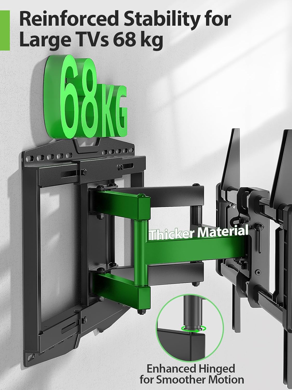 - Regulowany i zajmuje mało miejsca: ten uchwyt do telewizora z dwoma przegubowymi ramionami obejmuje nachylenie +5°/-15°, wychylny ± 45° (maksymalny kąt obrotu zależy od telewizora), +/-3° umożliwia idealne wypoziomowanie telewizora. Ten w pełni ruchomy uchwyt ścienny do telewizora można wyciągnąć na 85 mm i wyciągnąć go do 485 mm, co oszczędza cenne miejsce i sprawi, że Twój dom będzie wyglądał porządnie.