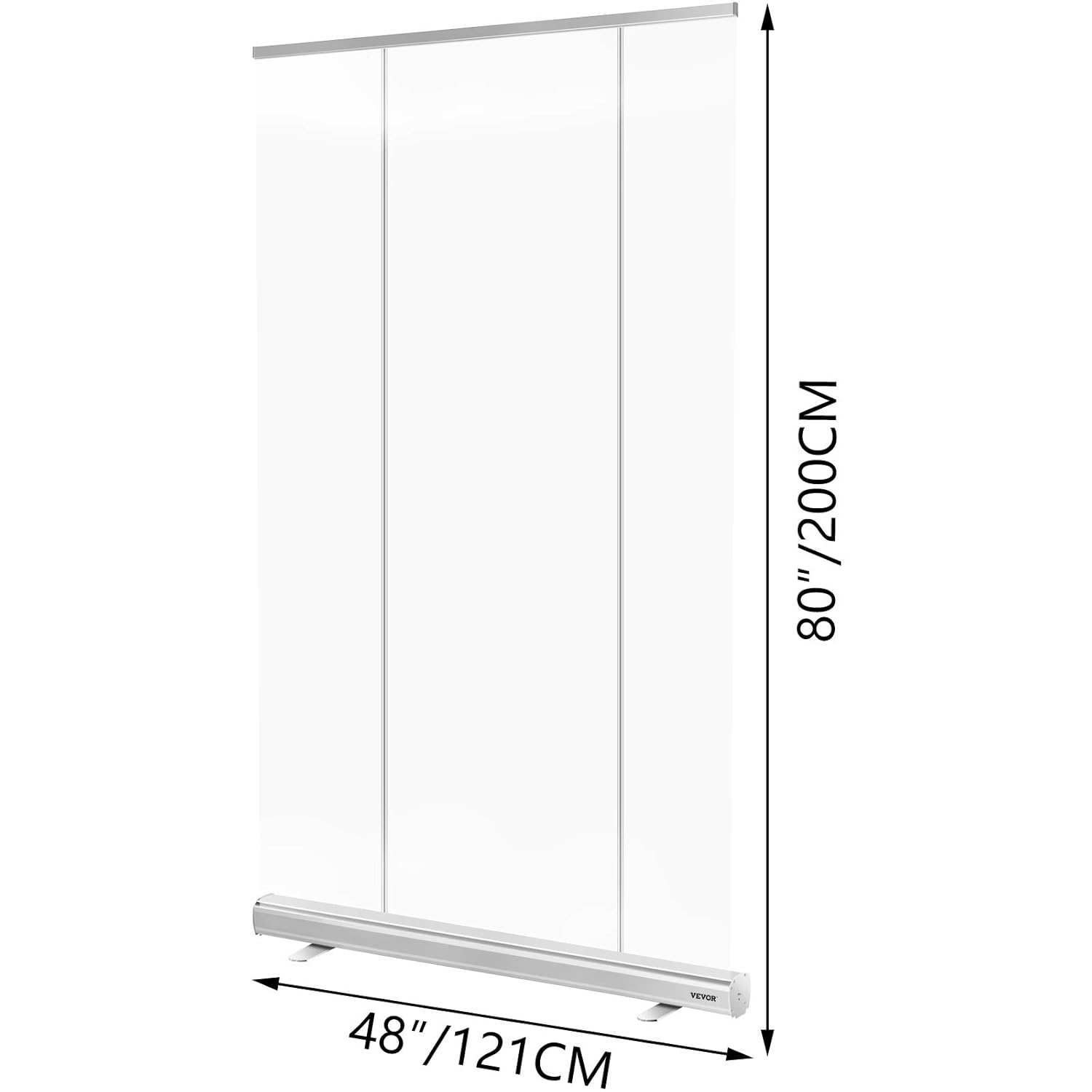 VEVOR 121 x 200 cm stojąca ochrona przed nitem, przezroczysta, ochrona przed rozpryskiwaniem, przenośna, ochrona przed upadkiem, stojak na plakat, wolnostojąca bariera izolacyjna, do kasy, kawiarni,
