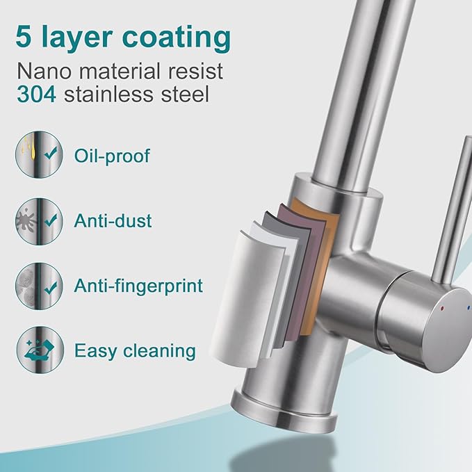 - 【Proste wzornictwo i wysokiej jakości wykonanie】Bateria niskociśnieniowa ma szczotkowany wygląd, który pasuje do każdej kuchni. Armatura w kształcie litery L jest nie tylko klasycznie zaprojektowana, ale zapewnia również duże miejsce pracy. Bateria zlewozmywakowa wykonana jest ze stali nierdzewnej 304 ze szczotkowaną powierzchnią, odporna na odciski palców i łatwa do czyszczenia w codziennym użytkowaniu.